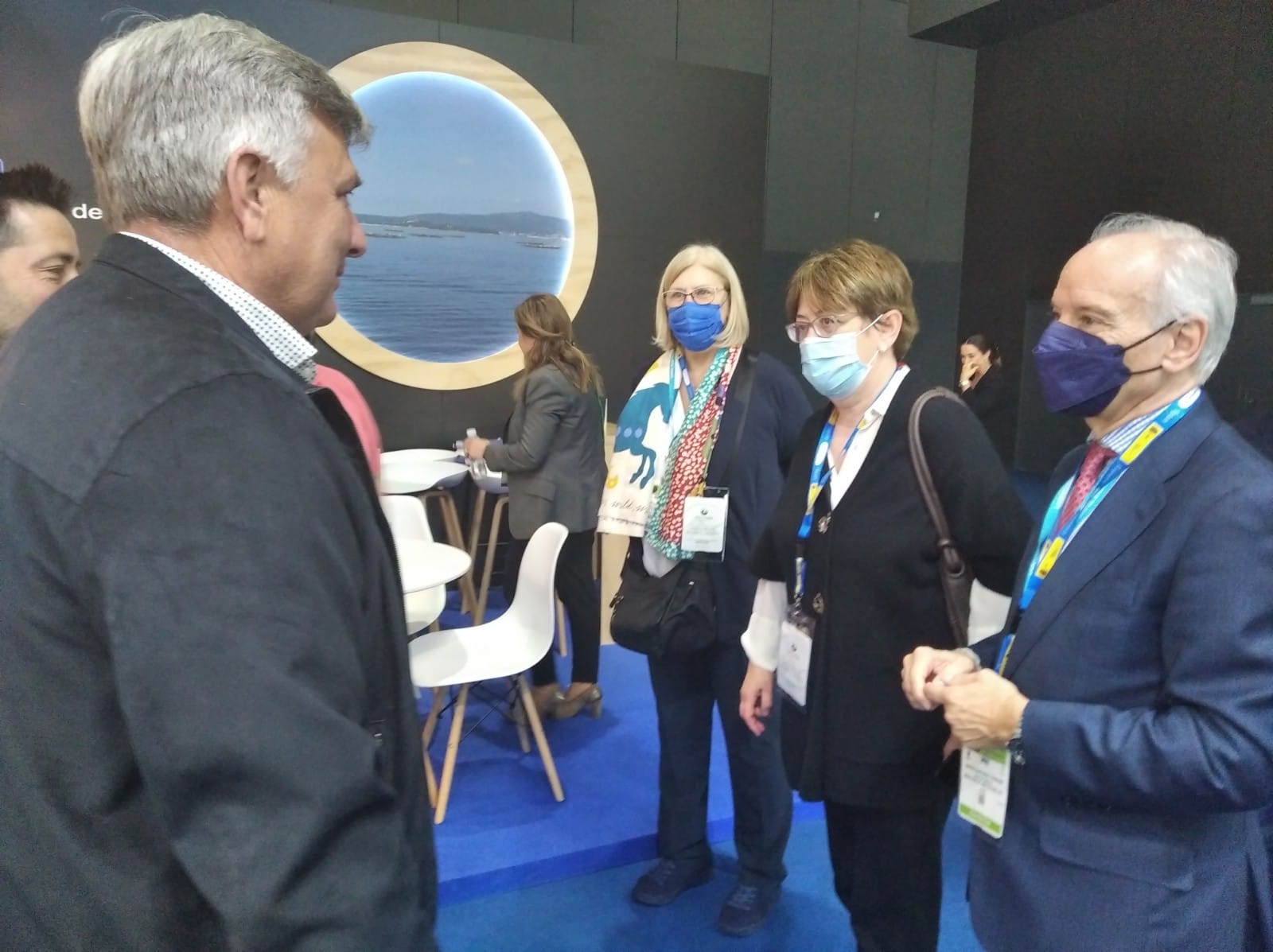 Entre os numerosos visitantes tivemos o pracer de recibir a visita da secretaria xeral e pesca, Alicia Villauríz Iglesias e o director xeral de ordenación pesqueira e acuicultura, Ignacio Gandarias Serrano do, que disfrutaron dunha breve charla co Presidente, Ricardo Herbón. Ambos dirixentes tiveron ademáis a oportunidade de degustar diferentes formas de preparación do mexillón . Tamén puideron observar o deseño do stand, un espacio onde fáise referencia o medio natural onde traballan @s produtor@s de mexillón a “batea” está formado por láminas de madeira e cun ollo de boi polo que se adiviña o mar de Galicia